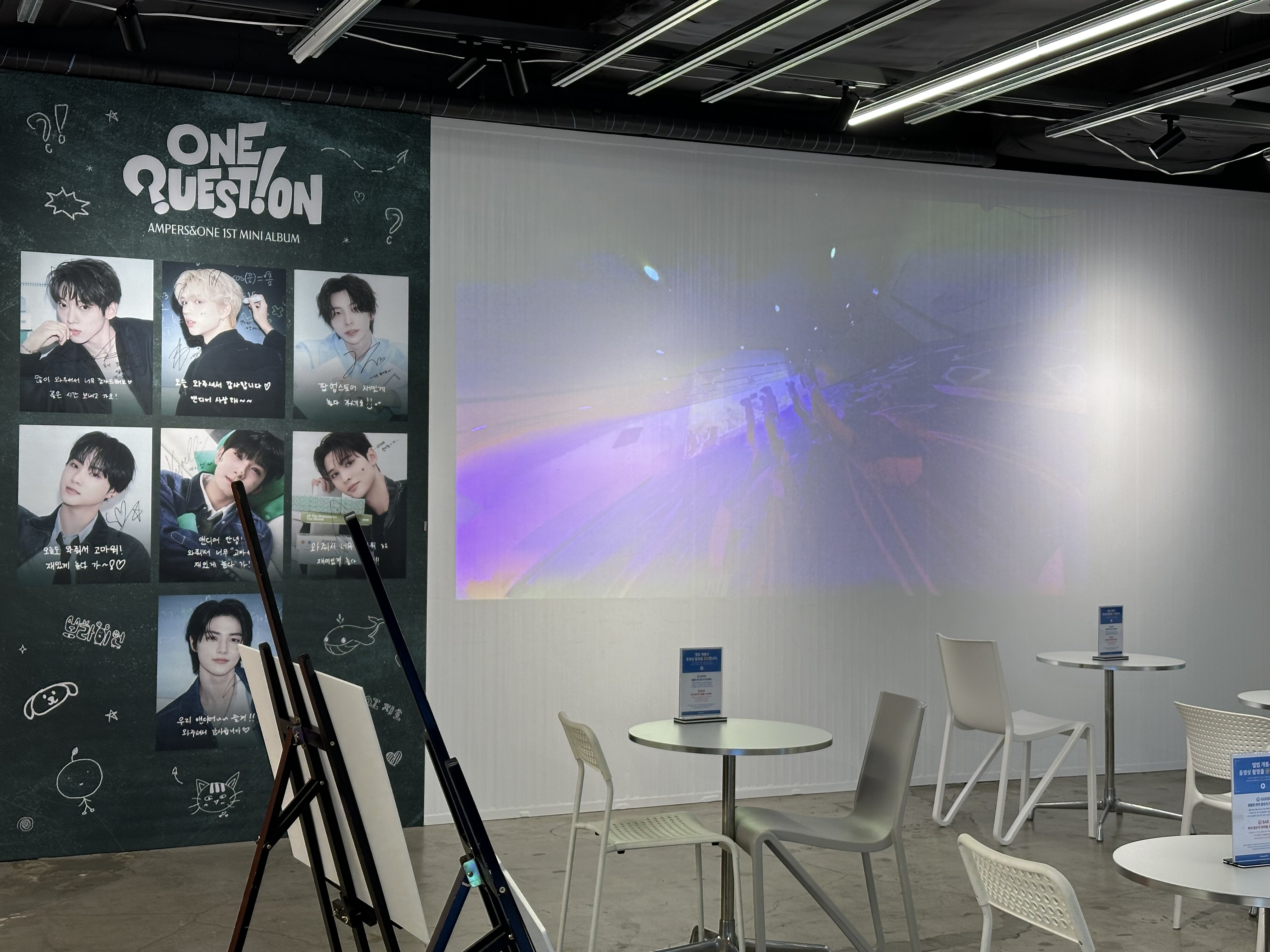 벽면에는 빔프로젝트를 통해서 앰퍼샌드원의 멋진 뮤비가 재생이 되고 있는데요