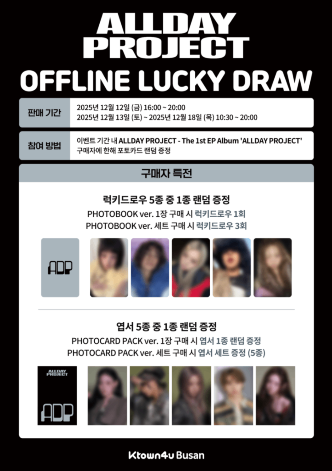[케타포 부산] 2025.12.12~2025.12.18 올데이 프로젝트 오프라인 럭키드로우