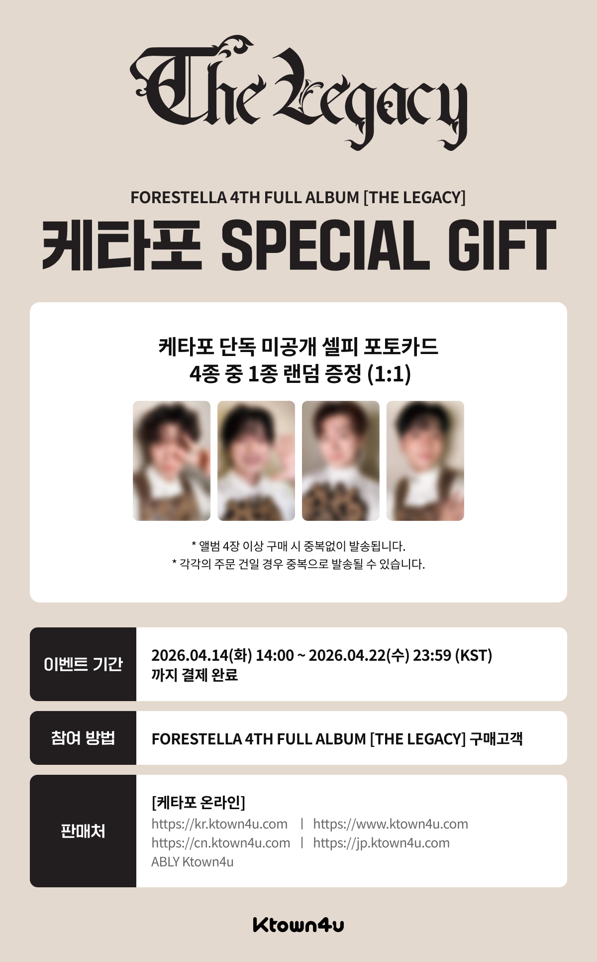 ![[공동구매][포레스텔라 - 정규앨범 4집 [THE LEGACY]] 포레스텔라 음원총공팀 공동구매](https://www.ktown4u.com/goods_files/SH0174/event_images/044170/EV44169651.default.1.png)