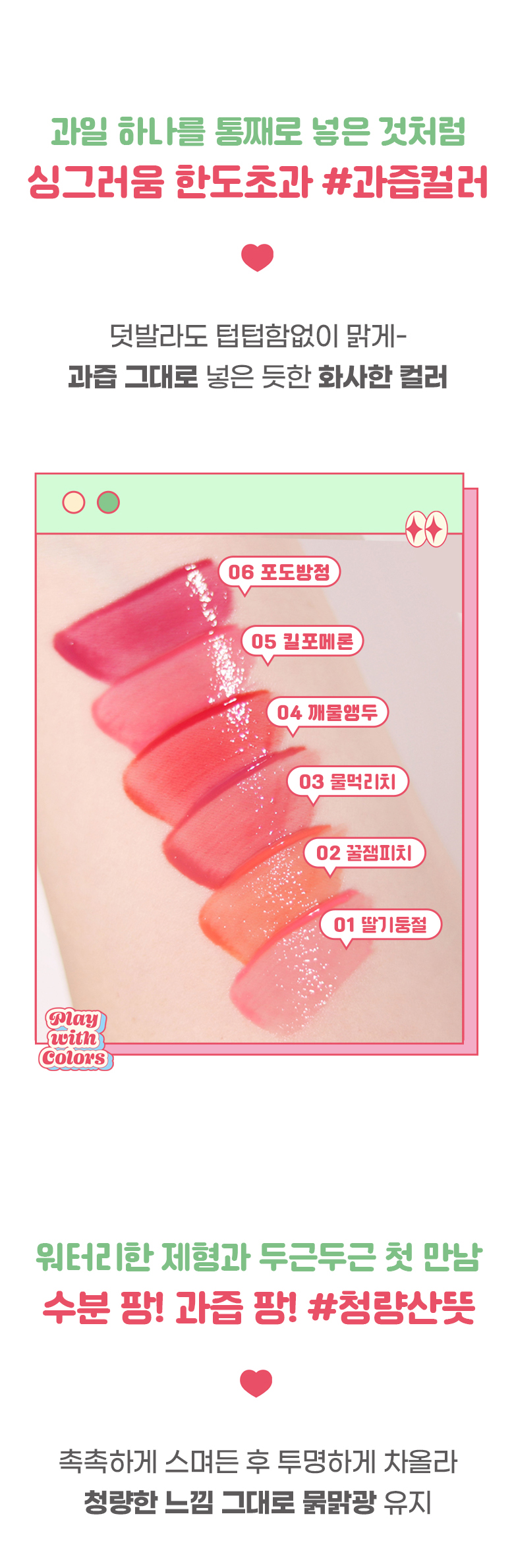 COLORGRAM[컬러그램] 쥬시 퐁당 틴트 03 물먹리치KRW10,00040%KRW6,000출시일2023-08-01입고(예정)일2023-09-13마일리지6상품코드GD00092467판매수량340배송비3,000원 (3만원 이상 무료배송)