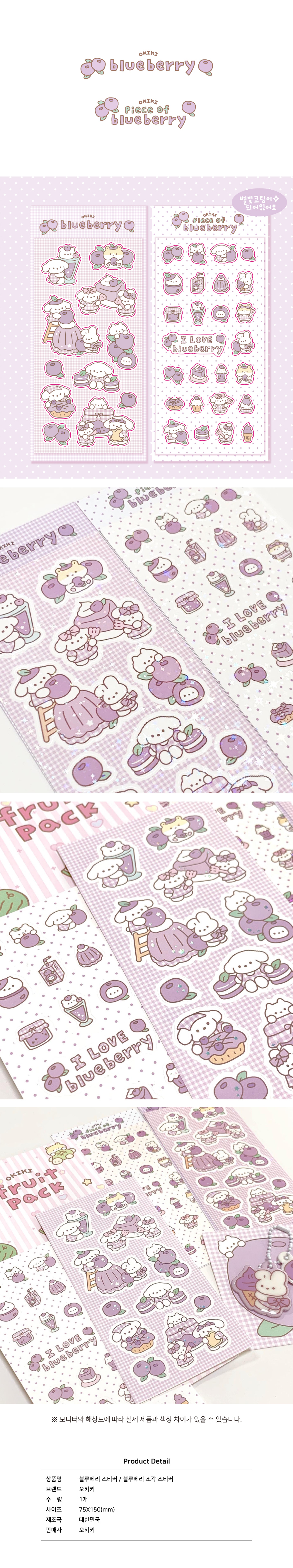 상세내역운영방침리뷰NOTICE* 아웃박스는 상품 보호를 위한 충격 방지용으로 제작되어 스크래치 및 구겨짐, 변색 등이 포장/배송 과정에서 생겨날 수 있고 이는 교환 사유가 될 수 없습니다.OKIKIOKIKI blueberry sticker INFORMATION 상품 정보 제공 고시상품명 : [오키키] 블루베리 스티커원산지 : Korea제조/수입 : 오키키 오키키품질보증기준 : 관련법 및 소비자 분쟁 해결규정에 따름.AS 책임자 연락처 : Ktown4u, 02-552-0978