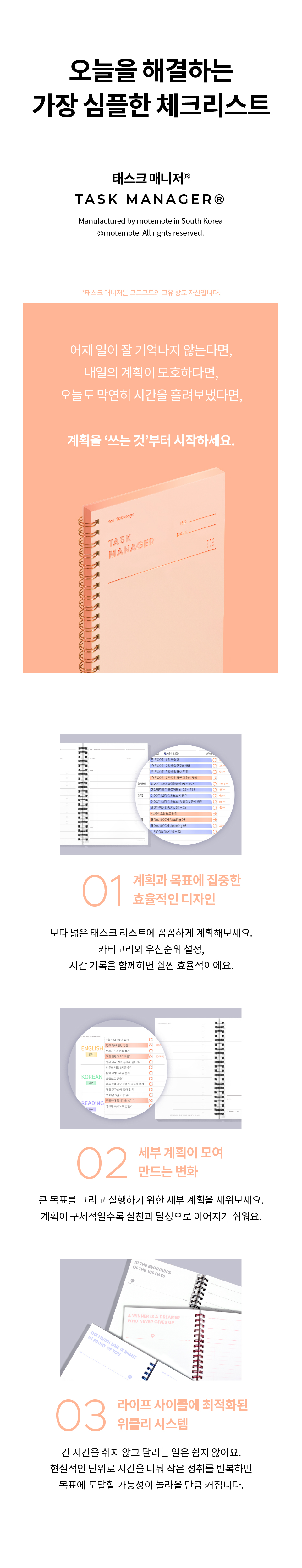 motemote[모트모트] 태스크 매니저 100DAYS_샤인피치KRW8,800출시일2022-04-27입고(예정)일2025-06-05마일리지8상품코드GD00077585판매수량5배송비3,000원 (3만원 이상 무료배송)