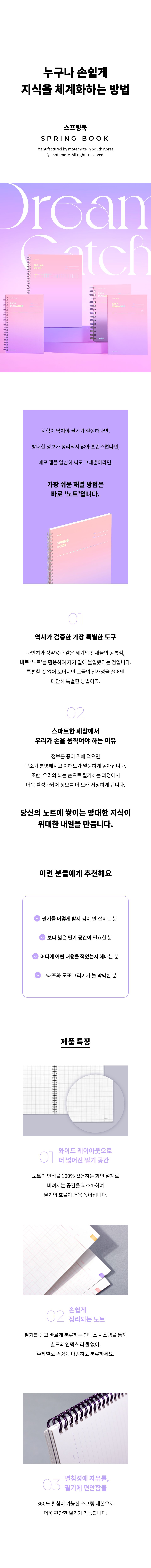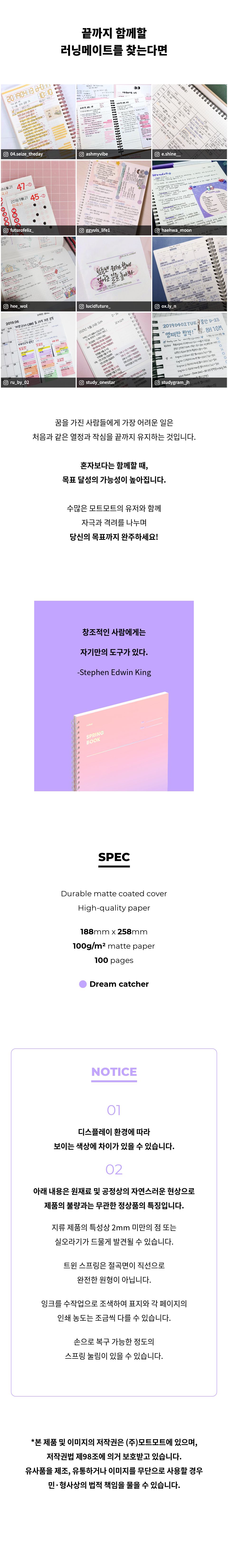 상세내역운영방침리뷰NOTICE* 아웃박스는 상품 보호를 위한 충격 방지용으로 제작되어 스크래치 및 구겨짐, 변색 등이 포장/배송 과정에서 생겨날 수 있고 이는 교환 사유가 될 수 없습니다.spring book_dream catcher(3type) 상품 정보 제공 고시상품명 : [모트모트] 스프링북_드림캐쳐(3type)원산지 : Korea제조/수입 : 모트모트 모트모트품질보증기준 : 관련법 및 소비자 분쟁 해결규정에 따름.AS 책임자 연락처 : Ktown4u, 02-552-0978