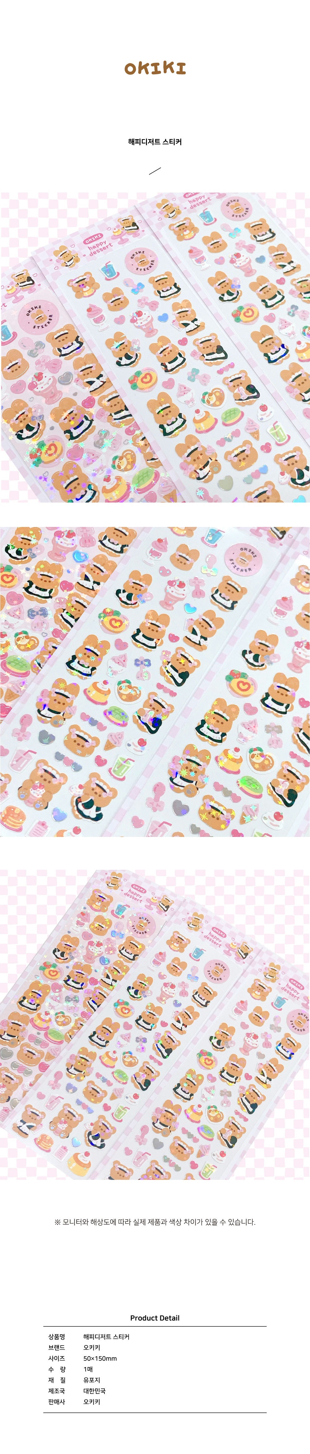 상세내역운영방침리뷰NOTICE* 아웃박스는 상품 보호를 위한 충격 방지용으로 제작되어 스크래치 및 구겨짐, 변색 등이 포장/배송 과정에서 생겨날 수 있고 이는 교환 사유가 될 수 없습니다.OKIKI happy dessert sticker INFORMATION 상품 정보 제공 고시상품명 : 오키키 해피디저트 스티커원산지 : Korea제조/수입 : 오키키 오키키품질보증기준 : 관련법 및 소비자 분쟁 해결규정에 따름.AS 책임자 연락처 : Ktown4u, 02-552-0978