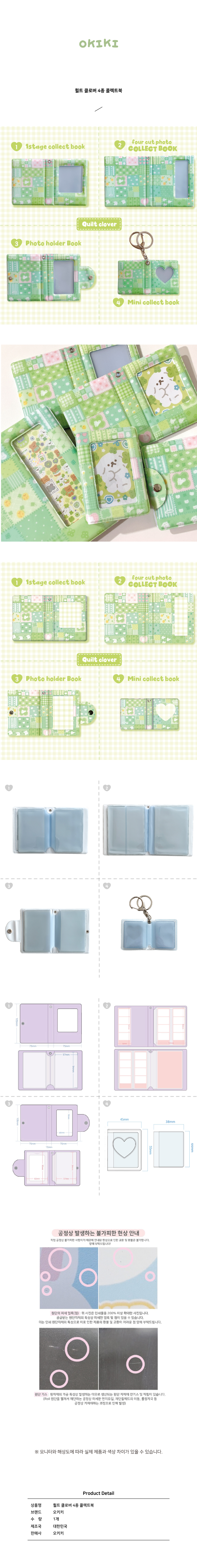 상세내역운영방침리뷰NOTICE* 아웃박스는 상품 보호를 위한 충격 방지용으로 제작되어 스크래치 및 구겨짐, 변색 등이 포장/배송 과정에서 생겨날 수 있고 이는 교환 사유가 될 수 없습니다.OKIKI OKIKI Quilt Clover Collectbook(4type) PART [콜렉트북,포토홀더북 주의사항(필독)] 1. 인쇄물(겉면,내지) 인쇄밀림,미세얼룩,작은점,찍힘 안내 공급받고 있는 인쇄원단의 경우 미세한 얼룩 및 점이 있을 수 있습니다! 인쇄 원단자체의 특성으로 이로 인한 제품의 환불이나 교환이 어려운 점 양해부탁드립니다. 2. 콜렉트북 원단은 낮은 온도에 약해서 받은 즉시 개봉하면 깨질 위험이 있어요! 실온에 10분정도 보관 후 열어주세요! 3. PVC(내지) 특성상 시간이 지나면 수축하는 현상이 발생합니다. 사진을 넣어서 보관해주시면 내지 수축이 발생하지 않습니다. (눌림,찍힌 부분은 드라이기로 살짝 열을 가해주면 복구됩니다. 참고해주세요.) 주의사항들은 업체에서도 교환,불량사유가 안되는 규정들입니다. 이 점에 예민하신 분은 주문을 지양해주세요! INFORMATION 상품 정보 제공 고시상품명 : 오키키 퀼트 클로버 콜렉트북(4type)원산지 : Korea제조/수입 : 오키키 오키키품질보증기준 : 관련법 및 소비자 분쟁 해결규정에 따름.AS 책임자 연락처 : Ktown4u, 02-552-0978