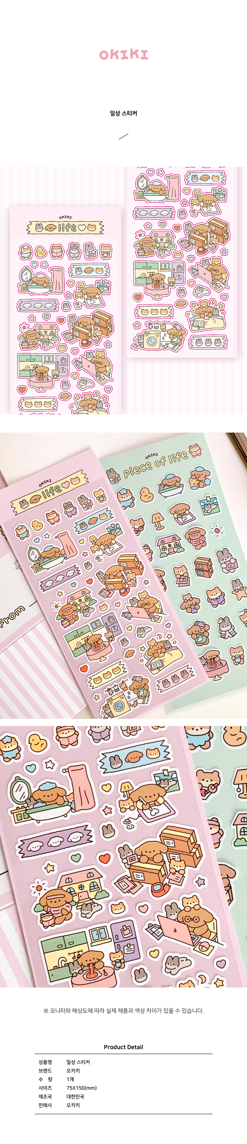 상세내역운영방침리뷰NOTICE* 아웃박스는 상품 보호를 위한 충격 방지용으로 제작되어 스크래치 및 구겨짐, 변색 등이 포장/배송 과정에서 생겨날 수 있고 이는 교환 사유가 될 수 없습니다.OKIKI Life Sticker INFORMATION 상품 정보 제공 고시상품명 : 오키키 일상 스티커원산지 : Korea제조/수입 : 오키키 오키키품질보증기준 : 관련법 및 소비자 분쟁 해결규정에 따름.AS 책임자 연락처 : Ktown4u, 02-552-0978