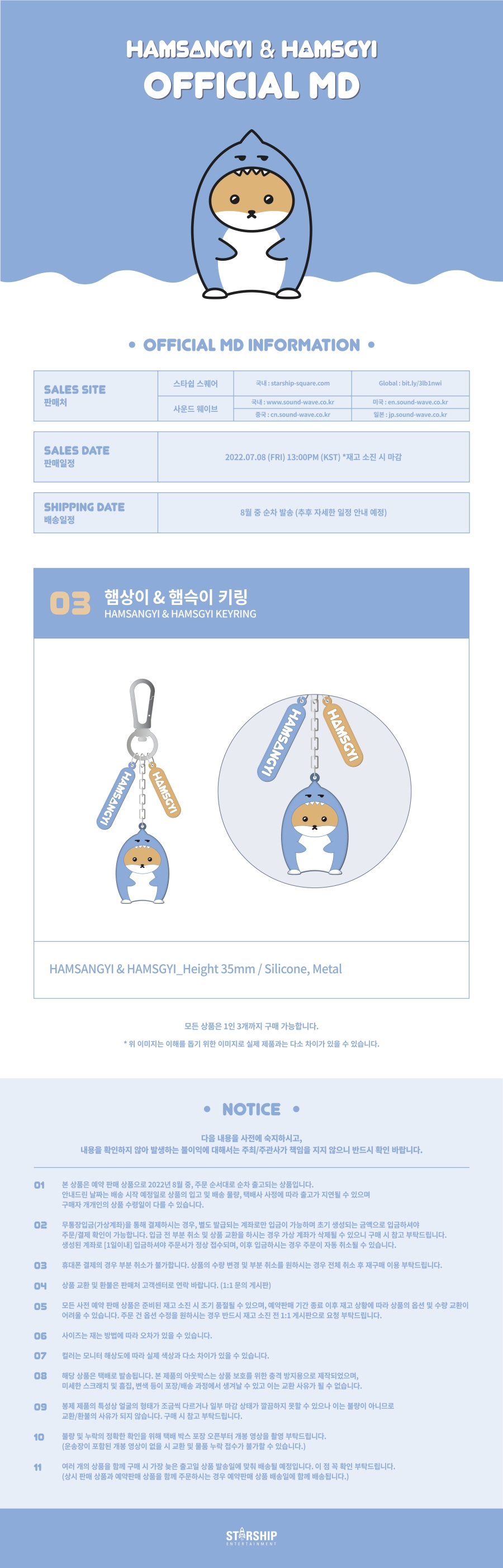 Kihyun기현 (Kihyun) - 햄상이 & 햄슥이 키링 [HAMSANGYI & HAMSGYI]KRW15,000출시일2022-08-17입고(예정)일2022-09-02마일리지15상품코드GD00081528배송비3,000원 (3만원 이상 무료배송)