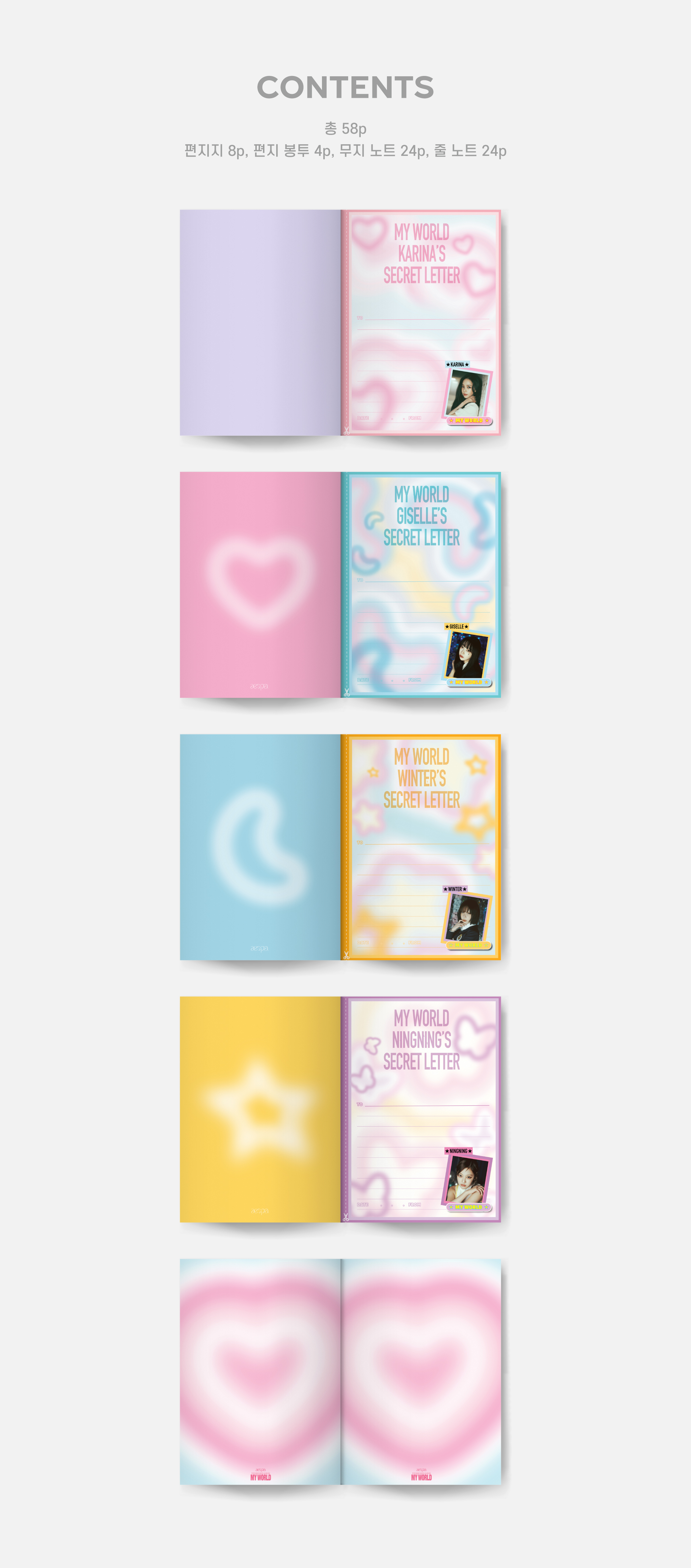 aespa에스파 (aespa)_SHAKER NOTE_MY WORLDKRW29,000출시일2023-09-18입고(예정)일2023-09-26마일리지29상품코드GD00098999판매수량25배송비3,000원 (3만원 이상 무료배송)