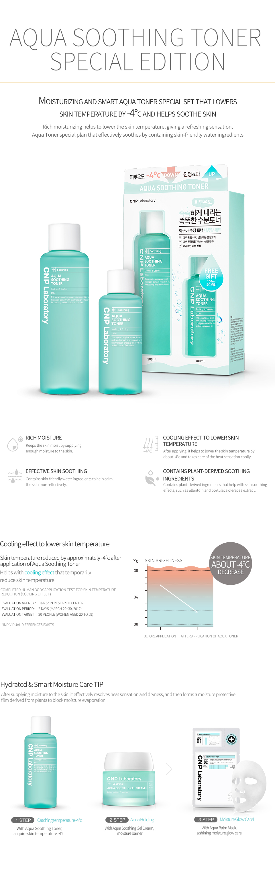 상세내역운영방침리뷰NOTICE* 아웃박스는 상품 보호를 위한 충격 방지용으로 제작되어 스크래치 및 구겨짐, 변색 등이 포장/배송 과정에서 생겨날 수 있고 이는 교환 사유가 될 수 없습니다. [CNP] AQUA SOOTHING TONER SPECIAL EDITION PART * The outer case is just for protecting goods. (scratches and discoloration on the case can not be the reason for exchanging or returning) INFORMATION 상품 정보 제공 고시상품명 : [유통기한임박] 아쿠아 수딩 토너 스페셜에디션원산지 : Korea제조/수입 : (주)엘지생활건강 (주)엘지생활건강품질보증기준 : 관련법 및 소비자 분쟁 해결규정에 따름.AS 책임자 연락처 : Ktown4u, 02-552-0978