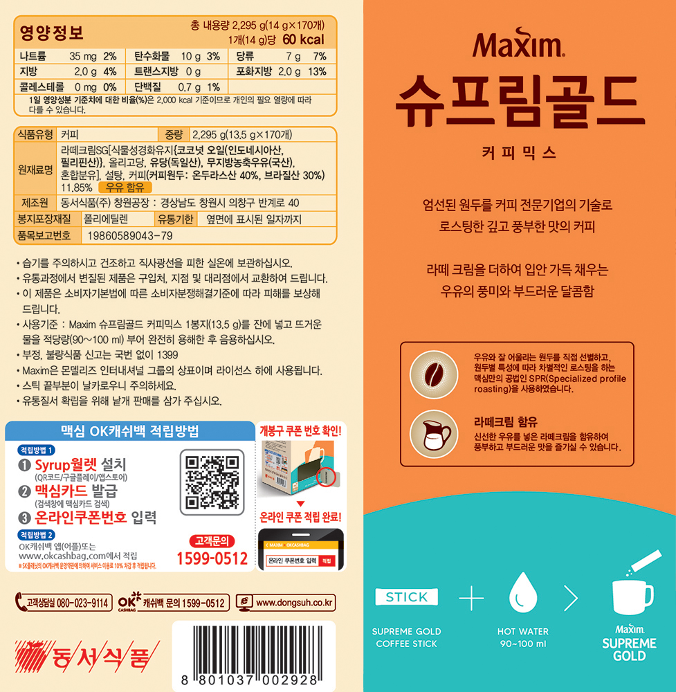 [동서] 맥심 슈프림 골드 커피 믹스 170T