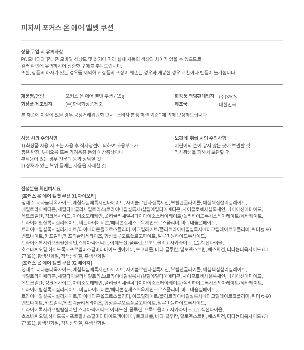 [피치씨] 포커스 온 에어 벨벳 쿠션 2TYPES
