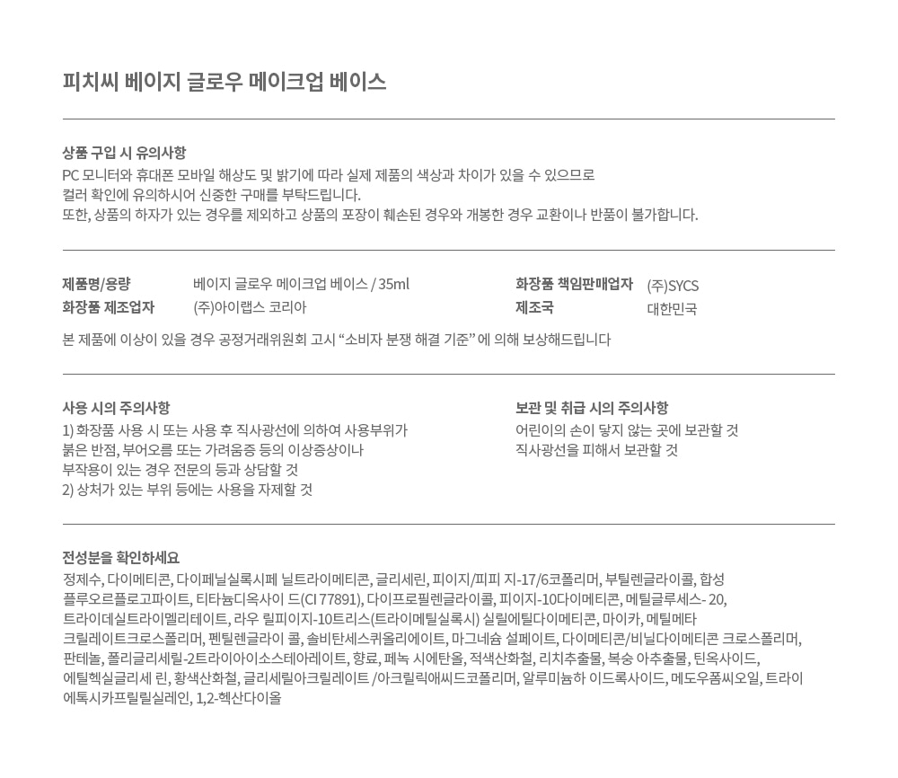 [피치씨] 베이지 글로우 메이크업 베이스