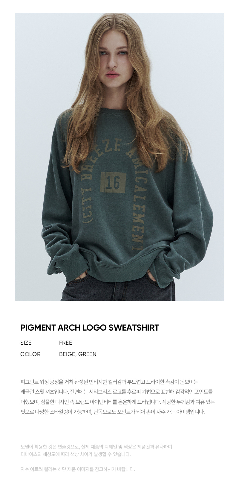 [CITYBREEZE] Pigment Arch Logo Sweatshirt_GREEN