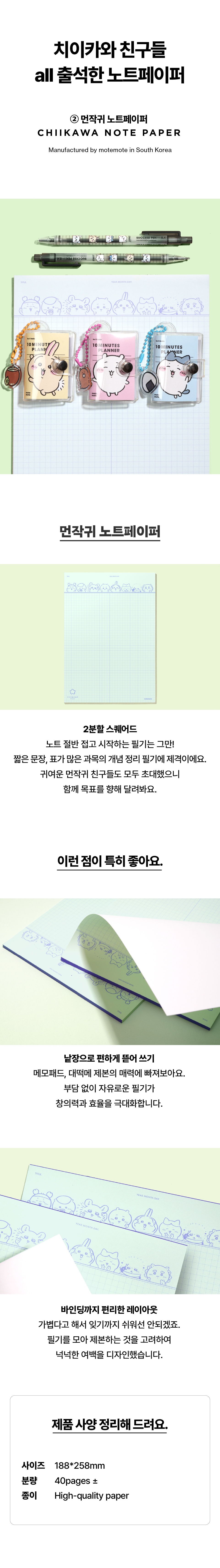 상세내역운영방침리뷰NOTICE* 아웃박스는 상품 보호를 위한 충격 방지용으로 제작되어 스크래치 및 구겨짐, 변색 등이 포장/배송 과정에서 생겨날 수 있고 이는 교환 사유가 될 수 없습니다.[Chiikawa] [motemote] Chiikawa - Lucky 5-piece Set - Chiikawa PART INFORMATION 상품 정보 제공 고시상품명 : [먼작귀] [모트모트] 먼작귀 - 행운 5종 SET - 치이카와원산지 : Korea제조/수입 : 모트모트 품질보증기준 : 관련법 및 소비자 분쟁 해결규정에 따름.AS 책임자 연락처 : Ktown4u, 02-552-0978