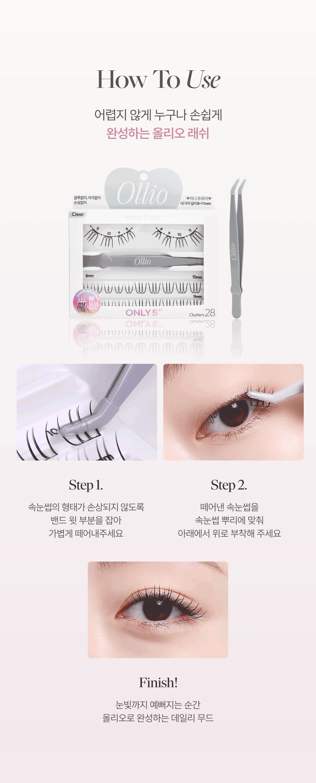 상세내역운영방침리뷰NOTICE* 아웃박스는 상품 보호를 위한 충격 방지용으로 제작되어 스크래치 및 구겨짐, 변색 등이 포장/배송 과정에서 생겨날 수 있고 이는 교환 사유가 될 수 없습니다.[Ollio] No-Glue Lash Mixx Pack 6types PART INFORMATION 상품 정보 제공 고시상품명 : [올리오] 노글루 속눈썹 믹스팩 6종원산지 : Indonesia제조/수입 : PTCOSM 품질보증기준 : 관련법 및 소비자 분쟁 해결규정에 따름.AS 책임자 연락처 : Ktown4u, 02-552-0978