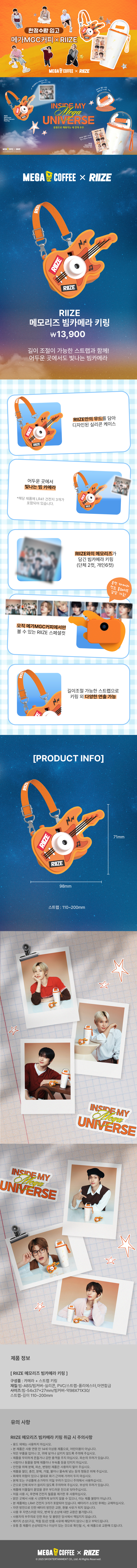 상세내역운영방침리뷰NOTICE* 아웃박스는 상품 보호를 위한 충격 방지용으로 제작되어 스크래치 및 구겨짐, 변색 등이 포장/배송 과정에서 생겨날 수 있고 이는 교환 사유가 될 수 없습니다.RIIZE메가MGC커피 X RIIZE Memories Beam Camera KeyringPART INFORMATION 상품 정보 제공 고시상품명 : 메가MGC커피 X 라이즈 (RIIZE) 메모리즈 빔카메라 키링원산지 : China제조/수입 : 아이콘스 품질보증기준 : 관련법 및 소비자 분쟁 해결규정에 따름.AS 책임자 연락처 : Ktown4u, 02-552-0978