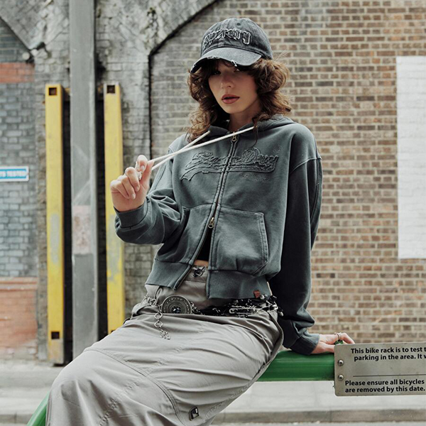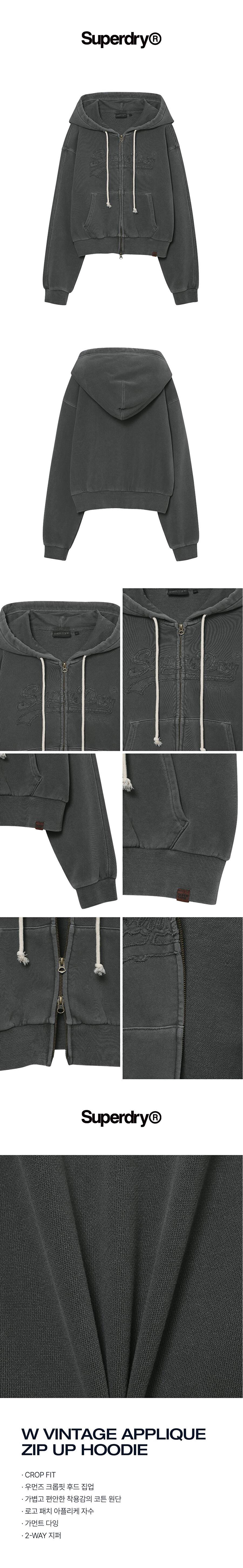 [아일릿 윤아 착용] [슈퍼드라이] 여성 빈티지 아플리케 집업 후디 다크그레이