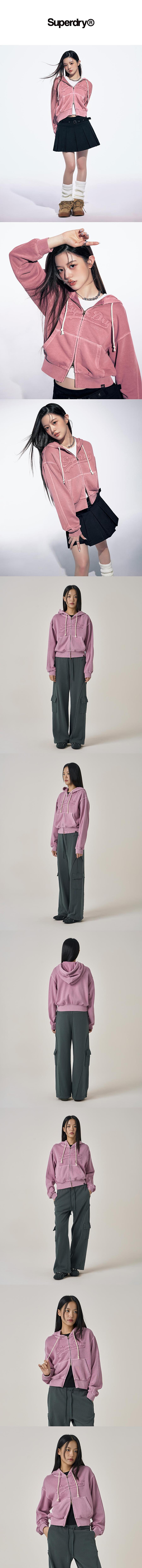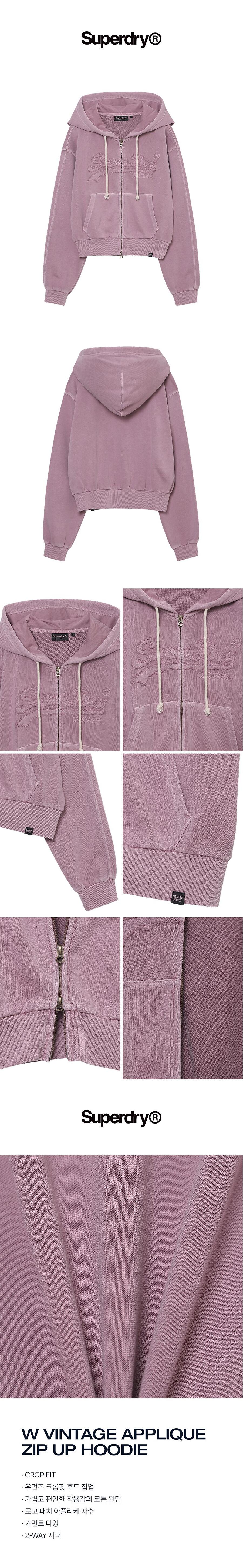 [아일릿 민주 착용] [슈퍼드라이] 여성 빈티지 아플리케 집업 후디 더스티핑크