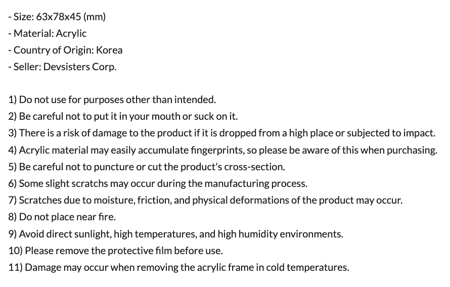 상세내역운영방침리뷰NOTICE* 아웃박스는 상품 보호를 위한 충격 방지용으로 제작되어 스크래치 및 구겨짐, 변색 등이 포장/배송 과정에서 생겨날 수 있고 이는 교환 사유가 될 수 없습니다.[CookieRun] Beast Cookie Acrylic Stand Keychain PART INFORMATION 상품 정보 제공 고시상품명 : [쿠키런] 비스트 쿠키 아크릴 스탠드 키링원산지 : Korea제조/수입 : 아이콘스 품질보증기준 : 관련법 및 소비자 분쟁 해결규정에 따름.AS 책임자 연락처 : Ktown4u, 02-552-0978