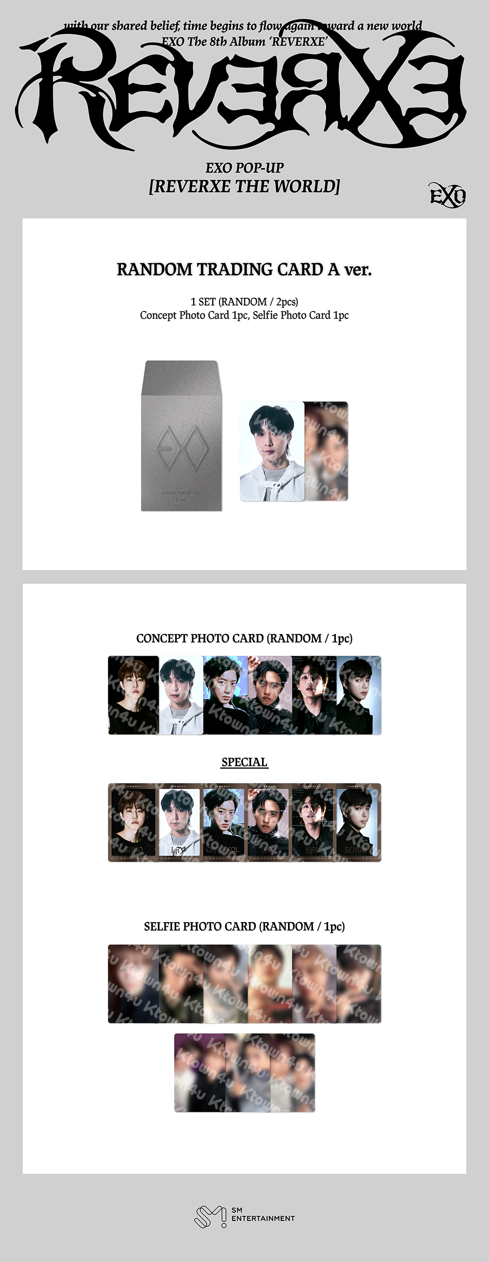 2026.1.28(수) 15:00 ~ 2026.2.3(화) 23:59 (KST) 기간 내 EXO - [2026 POP-UP [REVERXE THE WORLD] MD] 5만원 이상 구매 시, 포토카드 6종 중 1종 랜덤 증정 (10만원 이상 구매 시 2장 증정, 이상 동률)