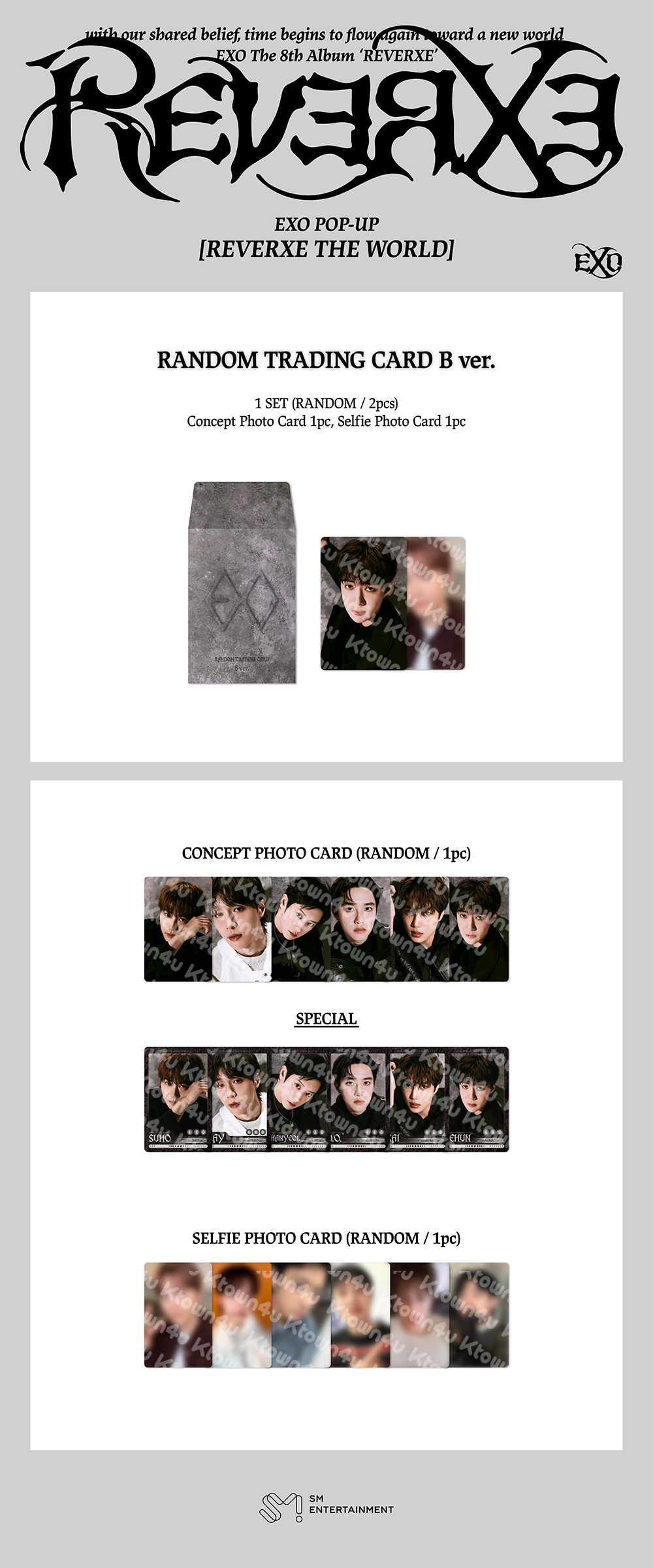 2026.1.28(수) 15:00 ~ 2026.2.3(화) 23:59 (KST) 기간 내 EXO - [2026 POP-UP [REVERXE THE WORLD] MD] 5만원 이상 구매 시, 포토카드 6종 중 1종 랜덤 증정 (10만원 이상 구매 시 2장 증정, 이상 동률)