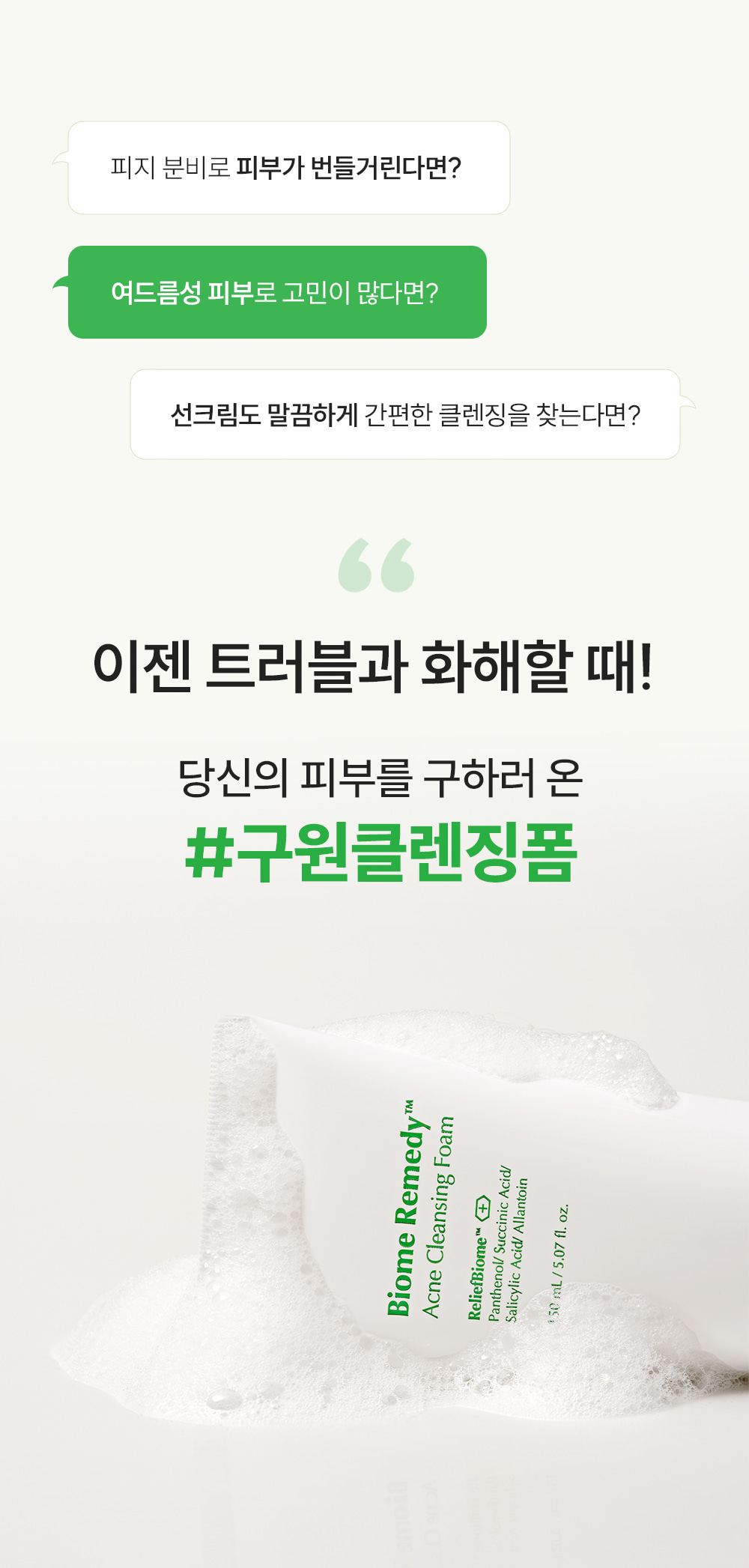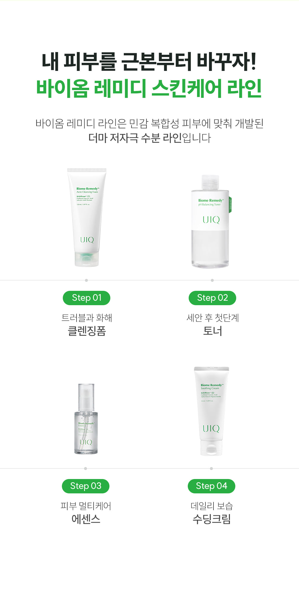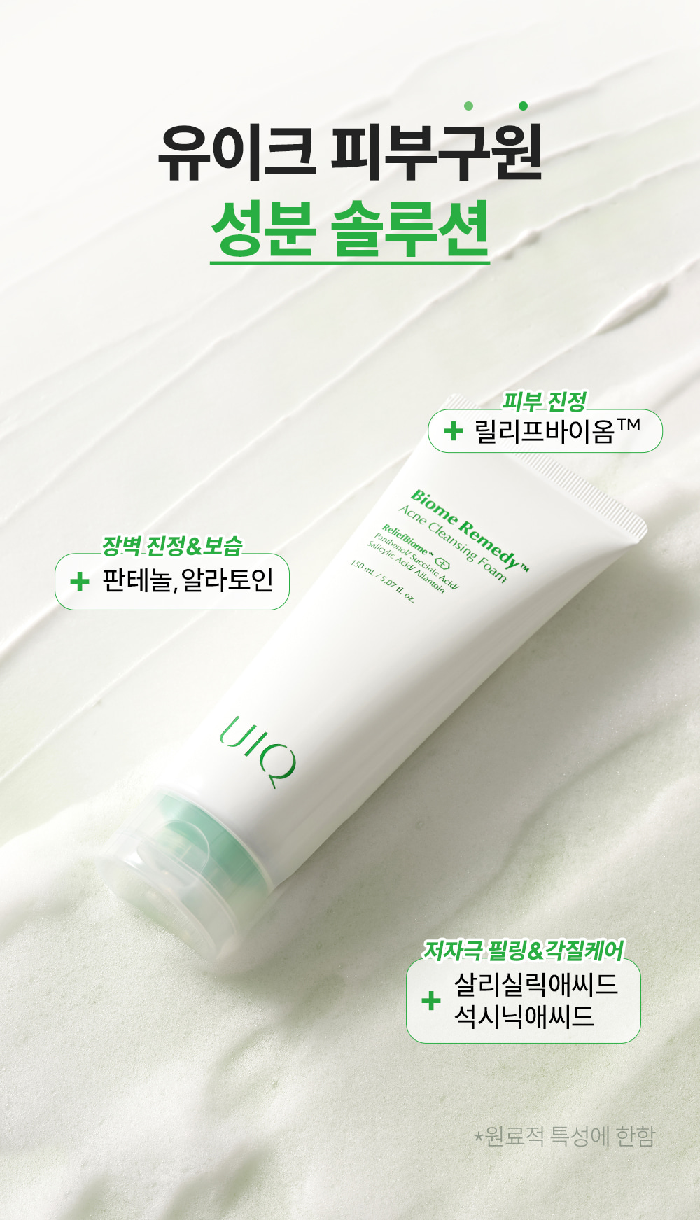 상세내역운영방침리뷰NOTICE* 아웃박스는 상품 보호를 위한 충격 방지용으로 제작되어 스크래치 및 구겨짐, 변색 등이 포장/배송 과정에서 생겨날 수 있고 이는 교환 사유가 될 수 없습니다.[UIQ] Biome Remedy™ Acne Cleansing Foam 150ml PART INFORMATION 상품 정보 제공 고시상품명 : [유이크] 바이옴 레미디 아크네 클렌징폼 150ml원산지 : Korea제조/수입 : 코스맥스 품질보증기준 : 관련법 및 소비자 분쟁 해결규정에 따름.AS 책임자 연락처 : Ktown4u, 02-552-0978