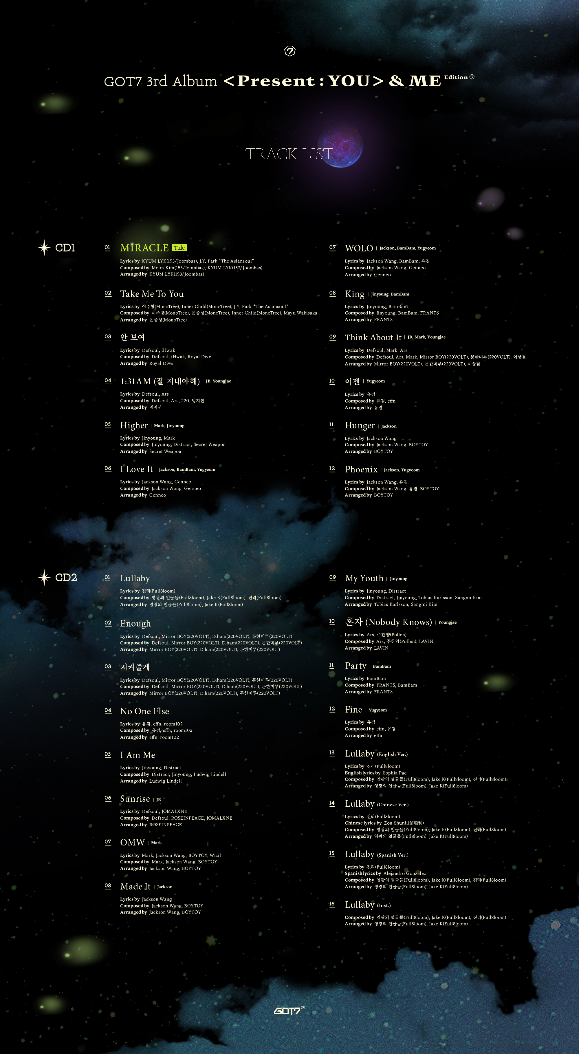 GOT7은 3월 미니앨범 'Eyes On You'와 타이틀곡 ‘Look’, 9월 정규 3집 앨범 ‘Present : YOU’와 타이틀곡 ‘Lullaby’를 발표한 데 이어 12월 리패키지 앨범 ' &ME Edition’과 타이틀곡 'Miracle’로 올해 세 번째 컴백을 알렸다.