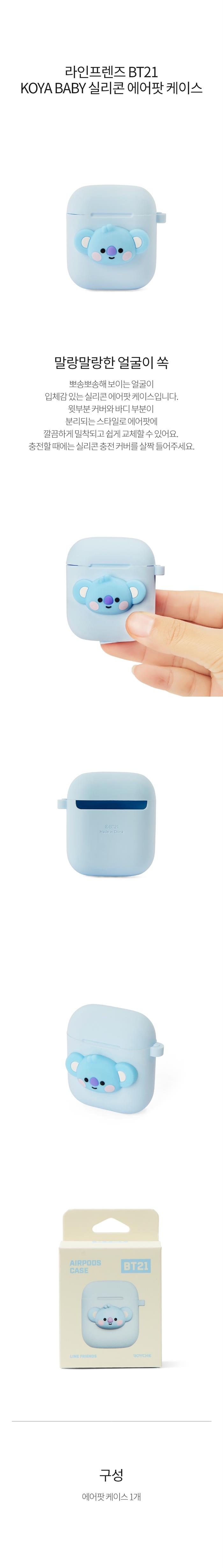 상세내역운영방침리뷰NOTICE* 아웃박스는 상품 보호를 위한 충격 방지용으로 제작되어 스크래치 및 구겨짐, 변색 등이 포장/배송 과정에서 생겨날 수 있고 이는 교환 사유가 될 수 없습니다.[BT21] KOYA BABY SILICON AIRPOD CASE * The outer case is just for protecting goods. (scratches and discoloration on the case can not be the reason for exchanging or returning) 상품 정보 제공 고시상품명 : [BT21] 코야 베이비 실리콘 에어팟 케이스원산지 : China제조/수입 : 품질보증기준 : 관련법 및 소비자 분쟁 해결규정에 따름.AS 책임자 연락처 : Ktown4u, 02-552-0978