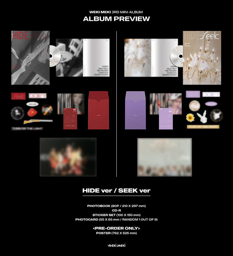 위키미키(Weki Meki)가 두 번째 미니앨범 [Lucky] 이후 약 2년 4개월 만에 세 번째 미니앨범 [HIDE and SEEK]을 발표한다. 그동안 ‘Picky Picky’ – ‘Tiki-Taka (99%)’ – ‘DAZZLE DAZZLE’ 시리즈로 통통 튀면서도 당당한 위키미키만의 색을 구축하며 앨범마다 한 단계씩 성장을 해왔기에 이번 앨범에서 보여줄 업그레이드된 매력에 더욱 기대감을 높인다.