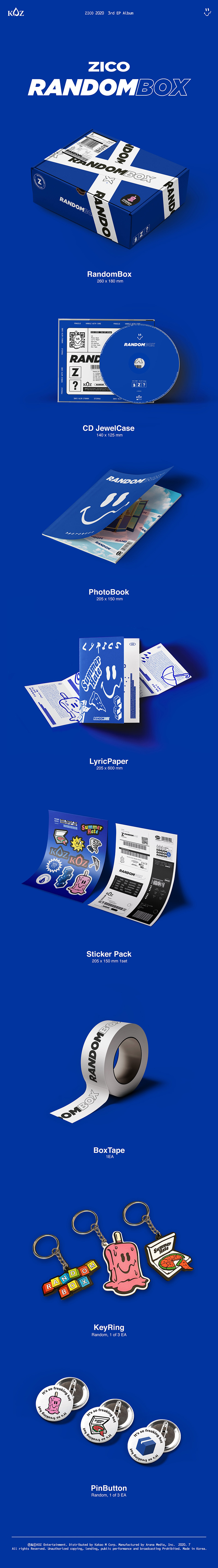 지코가 여름을 담은 EP 앨범 [RANDOM BOX]를 발표한다. 지난 앨범 [THINKING]에서 개인의 서사와 인간의 내면에 대한 심도 있는 고찰을 중심으로 철학적인 메시지를 담아냈다면, 이번 앨범에서는 일상에서 흔히 벌어질 만한 일화를 한데 모아 친근한 어조로 풀어낸다. 지코의 커리어를 통틀어 오롯이 여름에 의한, 여름을 위한 앨범은 이번이 처음이다. 무더운 여름철, 리스너들이 시원하고 편하게 이지리스닝을 할 수 있는 음악을 만들기 위해 지코는 앨범 제작 단계부터 곡의 스타일과 메시지, 보컬의 톤 등 앨범 전반에서 힘을 빼기 위해 노력했다는 후문이다. 지코가 다루는 여름의 이야기로 모두의 올여름이 보다 푸르고 시원하게 기억되길 바란다.