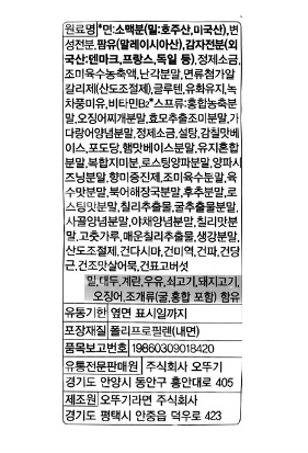 OTTOGI[오뚜기] 오동통면 120g*1개입KRW700출시일2020-08-06입고(예정)일2022-02-22마일리지0상품코드GD00046493판매수량352배송비3,000원 (3만원 이상 무료배송)