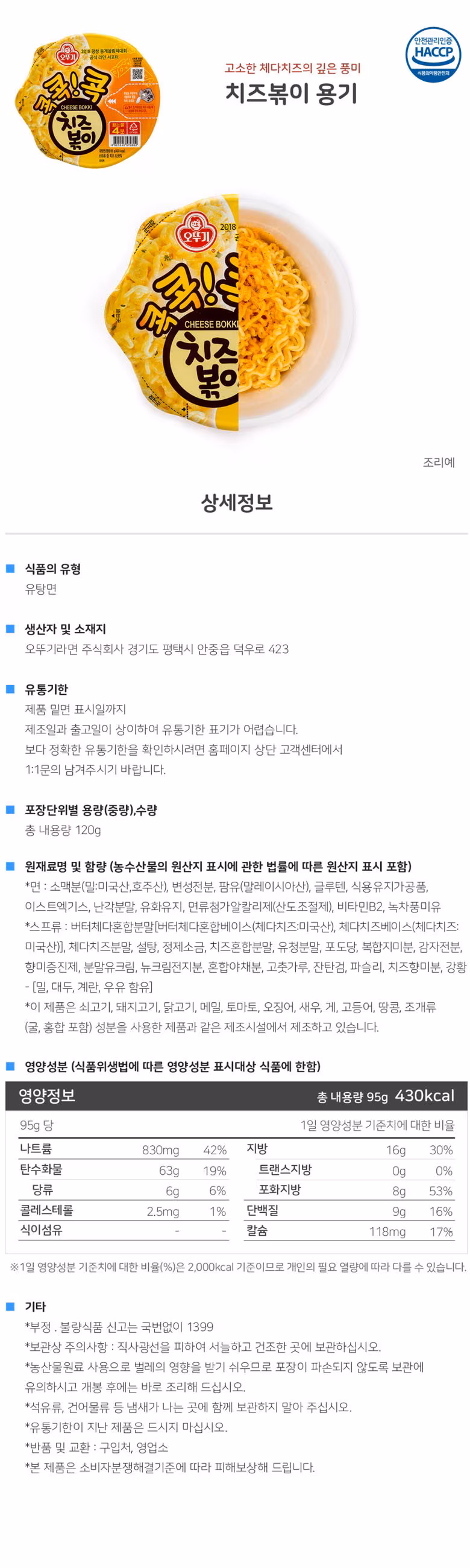 [오뚜기] 치즈볶이 컵라면 95g