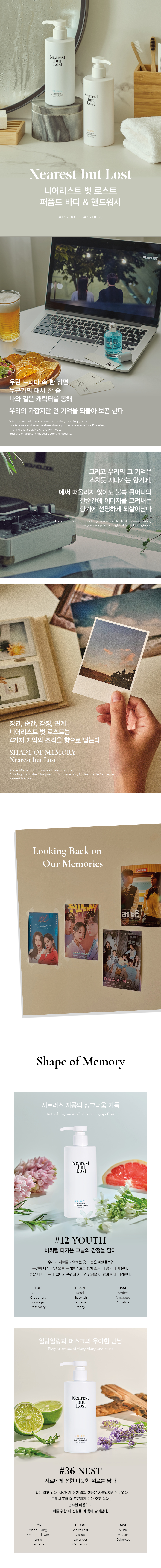 Nearest but Lost[니어리스트 벗 로스트] 퍼퓸드 바디&핸드워시 #36 NEST 300mlKRW20,000출시일2023-08-01입고(예정)일2021-06-16마일리지20상품코드GD00057593판매수량8배송비3,000원 (3만원 이상 무료배송)