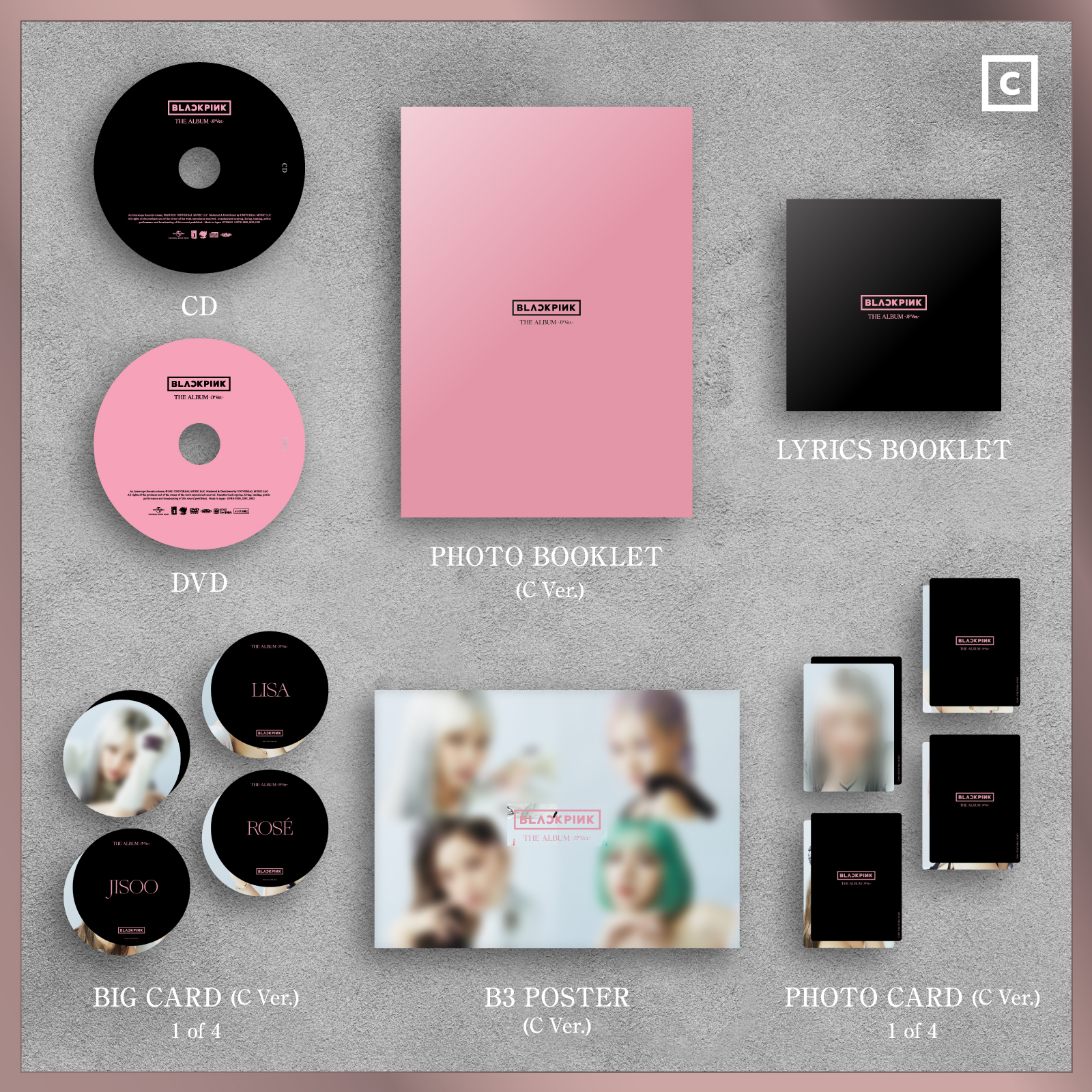 초회한정반 A는 「How You Like That -JP Ver.-」、초회한정반B는 「Lovesick Girls -JP Ver.-」、초회한정반C는 「Ice Cream (Feat. Selena Gomez)」을 컨셉으로 한 자켓으로, 각 컨셉별로 A4 사이즈 포토북클릿과 B3포스터, 원형 BIG카드, 포토카드 등의 호화 봉입 특전이 들어있다.
