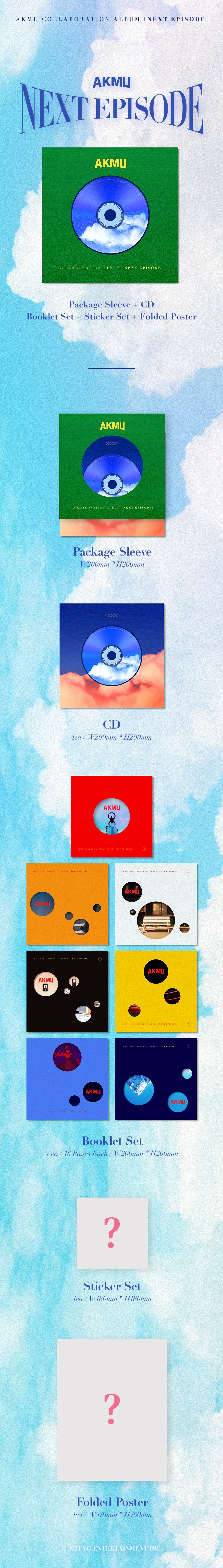 AKMU COLLABORATION ALBUM [NEXT EPISODE]는, 총 7개의 각기 다른 테마를 가진 부클릿 세트와 스티커 세트 및 접지포스터로 구성되어 있는 컬래버레이션 앨범은 오는 7월 27일 발매되며 YG셀렉트를 비롯 전국 온/오프라인 음반 매장에서 만나볼 수 있다.