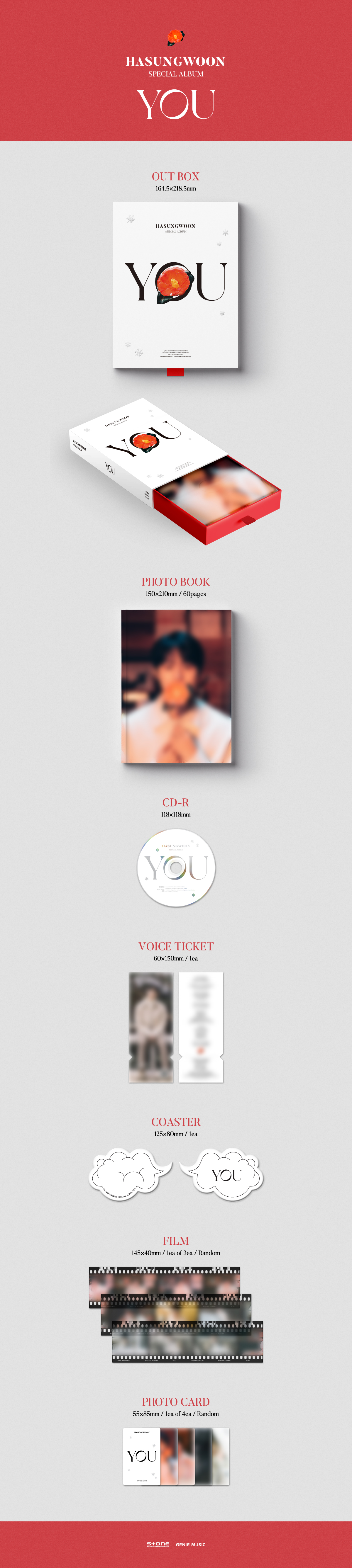 는 하성운이 팬들에게 전하고픈 선물이 담긴 앨범으로, 차가운 계절에도 아랑곳 않고 새빨갛게 피어나는 동백꽃에 빗대어 그 마음을 표현하고자 한다. 지금까지 드라마에서 만나볼 수 있었던 "Think of You", "Fall in You", "It's You", "Thank You" 부터 신곡 "Can't Live Without you"까지, 이번 앨범 "YOU"에서는 "팬"들에게 전하는 진심어린 마음의 메시지를 들려주고자 한다.