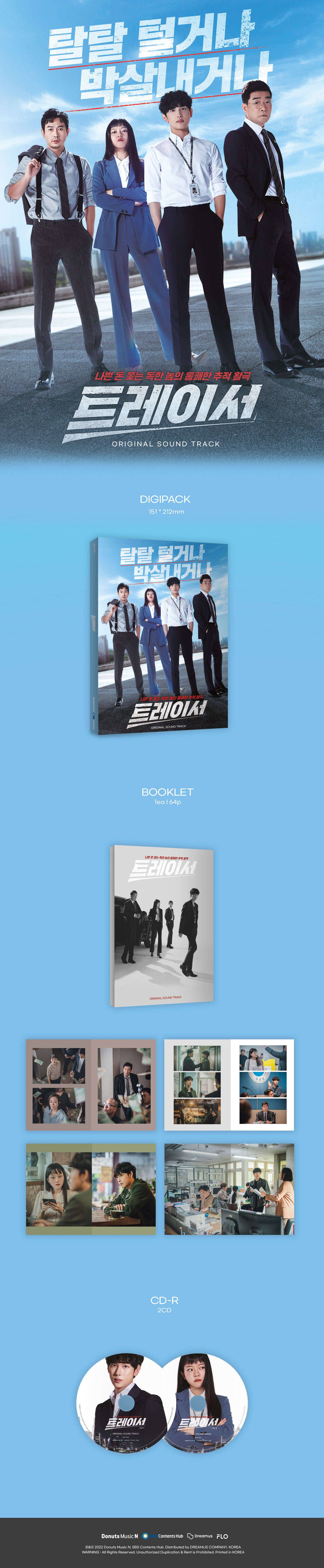 한시도 긴장의 끈을 놓을 수 없는 반전을 거듭하는 스토리로 시청자를 사로잡은 드라마 ‘트레이서’의 피지컬 앨범에는 임시완, 고아성, 손현주, 박용우의 드라마 속 활력 넘치는 모습을 담은 60p 포토북과 가사집이 포함되어 드라마의 여운이 가시지 않은 팬들을 위한 또 하나의 선물이 될 것이다.