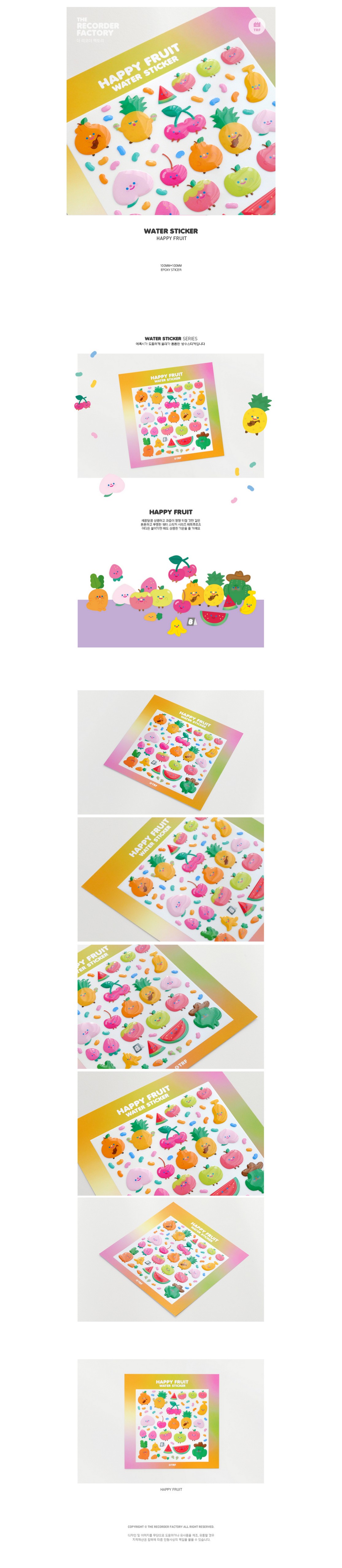 상세내역운영방침리뷰NOTICE* 아웃박스는 상품 보호를 위한 충격 방지용으로 제작되어 스크래치 및 구겨짐, 변색 등이 포장/배송 과정에서 생겨날 수 있고 이는 교환 사유가 될 수 없습니다.TRF happy fruit friends water sticker 상품 정보 제공 고시상품명 : 리코더팩토리 워터스티커_해피 후르츠원산지 : Korea제조/수입 : 리코더팩토리 리코더팩토리품질보증기준 : 관련법 및 소비자 분쟁 해결규정에 따름.AS 책임자 연락처 : Ktown4u, 02-552-0978