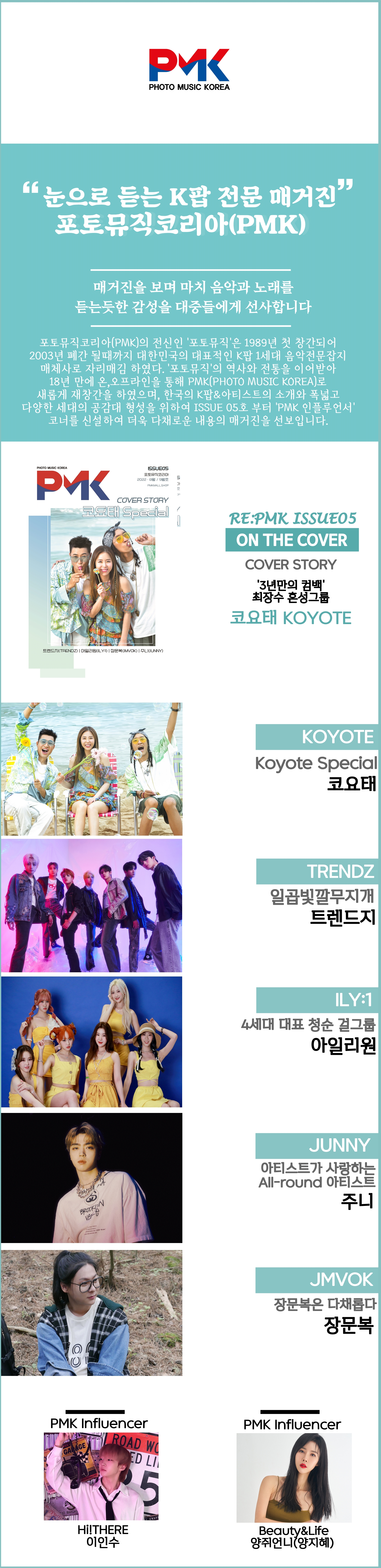 [잡지] PMK 포토뮤직코리아 ISSUE05 2022.08~09 (표지 : 코요태 / 내지 : 코요태, 트렌드지, 아일리원, 장문복, 주니)