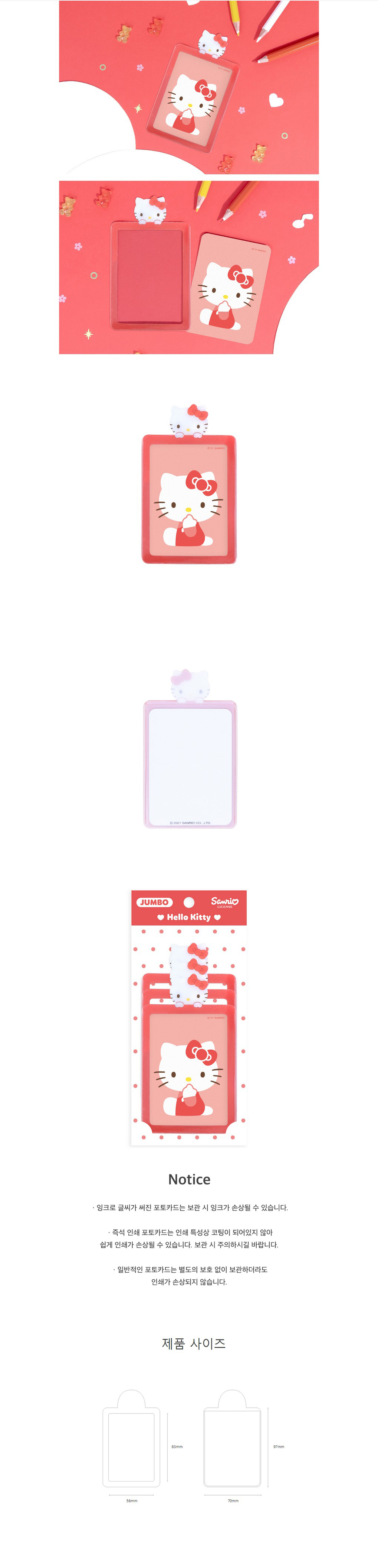 상세내역운영방침리뷰NOTICE* 아웃박스는 상품 보호를 위한 충격 방지용으로 제작되어 스크래치 및 구겨짐, 변색 등이 포장/배송 과정에서 생겨날 수 있고 이는 교환 사유가 될 수 없습니다.HELLO KITTY jumbo photocard cover INFORMATION 상품 정보 제공 고시상품명 : 헬로키티 점보 포토카드 커버원산지 : Korea제조/수입 : 더키월드품질보증기준 : 관련법 및 소비자 분쟁 해결규정에 따름.AS 책임자 연락처 : Ktown4u, 02-552-0978