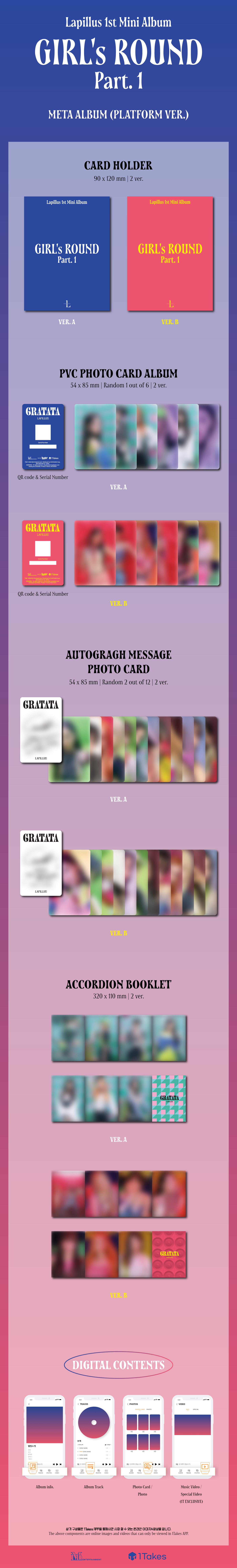이번 앨범에는 “꿈을 장전하고 발사”한다는 의미를 담은 타이틀곡 ‘GRATATA’를 비롯해 타오르는 사랑을 노래한 ‘Burn With Love’, 헤어 나올 수 없는 매력의 라필루스 왕국으로 초대하는 ‘Queendom’ 그리고 데뷔곡 ‘HIT YA!’ 등 다섯 트랙이 수록됐다