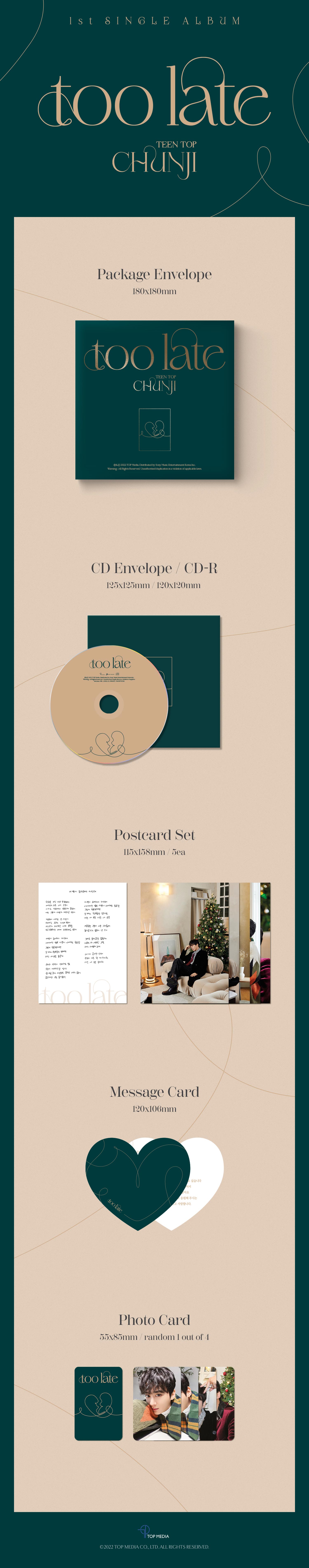 천지의 [too late]는 편지를 연상케 하는 패키징으로 제작되어 연말 깜짝 선물처럼 반가움을 선사할 것이다.