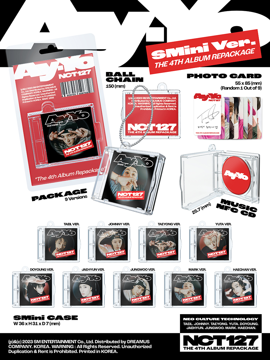 1월 30일 발매되는 NCT 127 정규 4집 리패키지 ‘Ay-Yo’는 동명의 타이틀 곡 ‘Ay-Yo’를 비롯한 ‘DJ’, 'Skyscraper (摩天樓; 마천루)' 등 신곡 3곡과 정규 4집에 수록된 12곡까지 총 15곡으로 구성, 한층 풍성한 음악으로 글로벌 팬들을 매료시킬 전망이다.