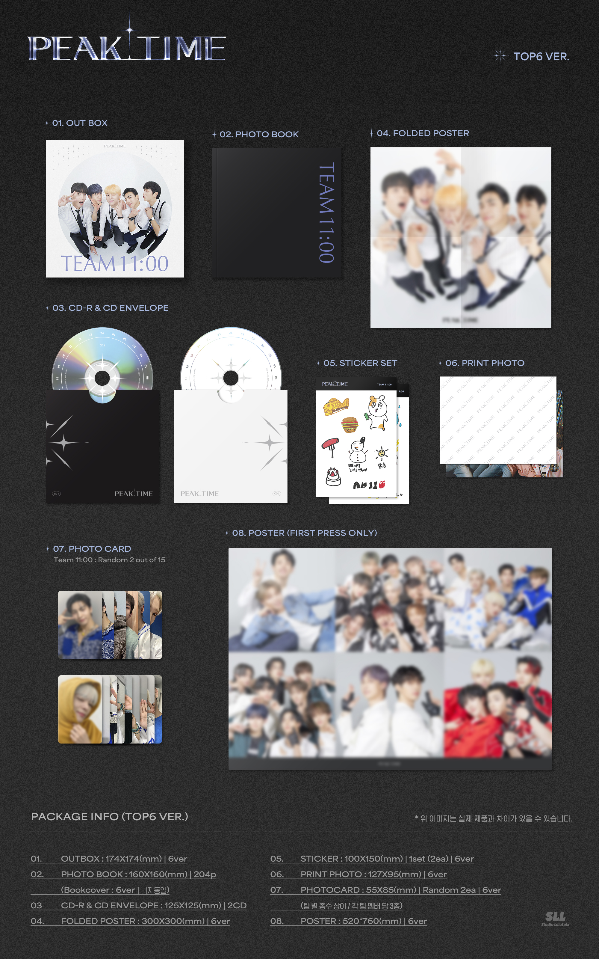 * 구성(1종 당): 자켓커버 1종 + 포토북 1종 + CDR2 + 스티커 1세트(2종) + 접지 포스터 1종 + TOP6 포스터 1종 + 포토카드 (15종 중 2종 랜덤) + 인화사진 1종