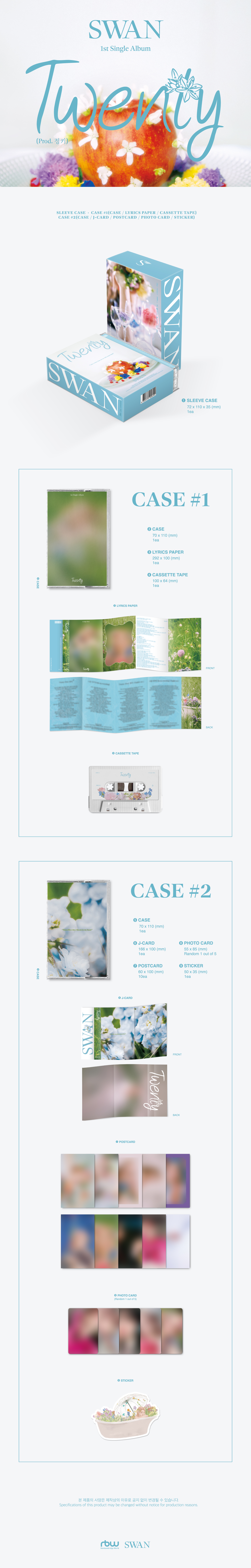 타이틀곡 'Twenty (Prod. 정키)'는 몽환적인 인트로의 사운드와 부드러운 보컬이 어우러진 곡으로, 커가면서 무서운 게 많아졌을 이들에게 감히 ‘내가 함께하겠노라.’ 말하며 어른이 되는 걸 두려워하지 말고 마음껏 펼치길 바라는 메시지를 담고 있다. 수록곡 ‘나를 비추면 (Be My Everything)’은 리드미컬한 멜로디의 팝 알앤비곡으로, 마치 한 편의 어린아이의 청춘 영화 속 주인공이 된 것 같은 착각에 들게 한다. 두 곡 모두 수안(SWAN)이 직접 작사에 참여하였으며, 영어로 번안한 버전 또한 수록해 많은 이들에게 메시지가 닿도록 섬세하게 작업했다.