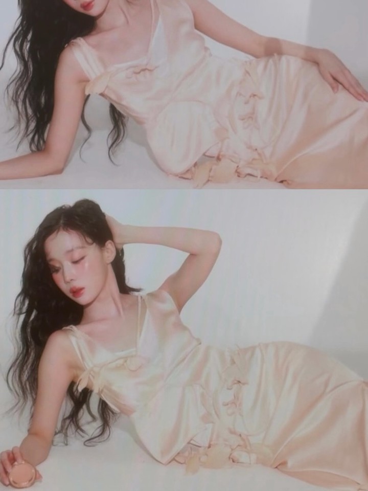 On December 22, Winter shared behind-the-scenes photos from a recent photoshoot on her SNS, forgoing any specific captions. In the images, Winter wore a champagne beige silk slip top paired with coordinating bottoms, channeling a “romantic glam” vibe.