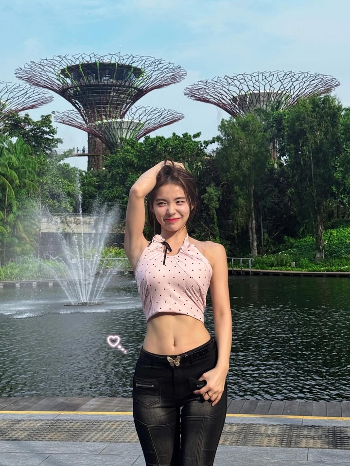特に、マーメイド・パーク(マーライオンパーク)では、ユーモア溢れる「水しぶきを浴びる」ポーズで視線を釘付けに。健康的なボディラインと生き生きとした表情が、イ・ダヘならではの愛らしさをより一層引き立てました。