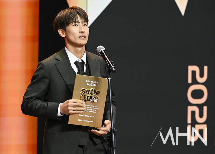 (MHN 이현지 기자) 스트리머 시조새가 27일 오후 서울 마포구 상암 SOOP 콜로세움에서 진행된 '2025 스트리머 대상'에서 소감을 전하고 있다.