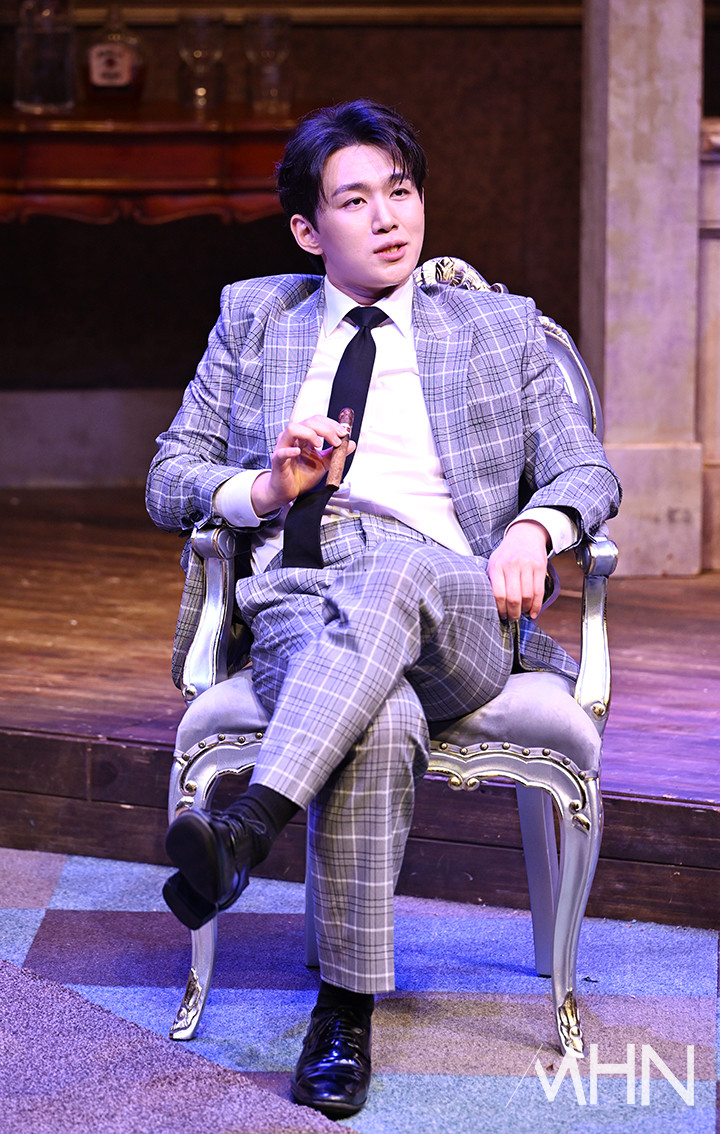 (MHN 이현지 기자) 배우 오승훈이 19일 오후 서울 종로구 TOM에서 진행된 연극 '오펀스' 프레스콜에서 열연을 선보이고 있다.