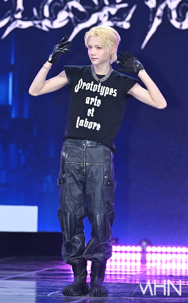 (MHN 이현지 기자) 그룹 클로즈 유어 아이즈(CLOSE YOUR EYES) 켄신이 11일 오후 서울 강서구 SBS 등촌 공개홀에서 새 앨범 '블랙아웃(blackout)' 발매 기념 쇼케이스에서 포토타임을 갖고 있다.
